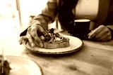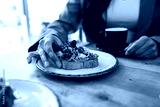 Close up of cool woman having healthy toast for breakfast in a healthy coffee shop.