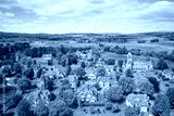 Luxury countryside rural village aerial view from above in Quarriers Village in Scotland