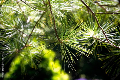 Green needles on a pine tree.