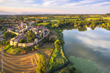 Aerial view of one of the best village of Italy with heart-shaped lake, Castellaro Lagusello, Mantova, Italy