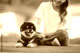 Happy asian woman playing with dog on the park in sunset light, summer vacation.
