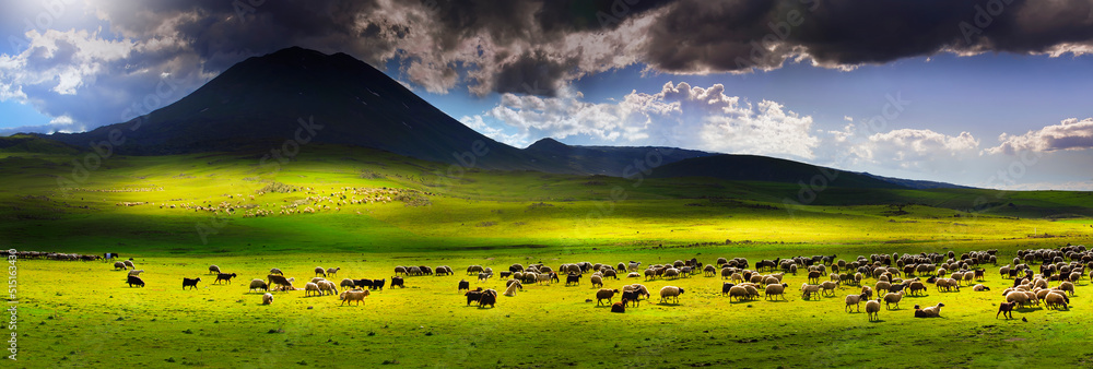 Mount Ararat (Turkey) at 5,137 m viewed from Yerevan, Armenia. This snow-capped dormant compound volcano consists of two major volcanic cones described in the Bible as the resting place of Noah's Ark.
