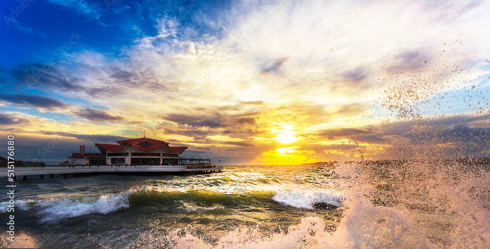 Istanbul buyukcekmece Albatros beach , Strong waves hit the beach , long exposure technique was used