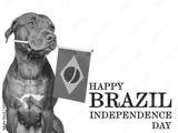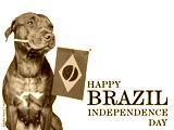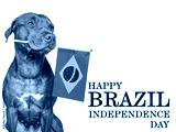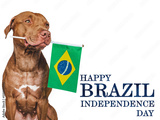 Happy Independence Day. Lovable, adorable dog and Brazilian Flag. Close-up, indoors. Studio shot. Congratulations for family, loved ones, relatives, friends and colleagues. Pets care concept
