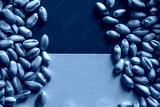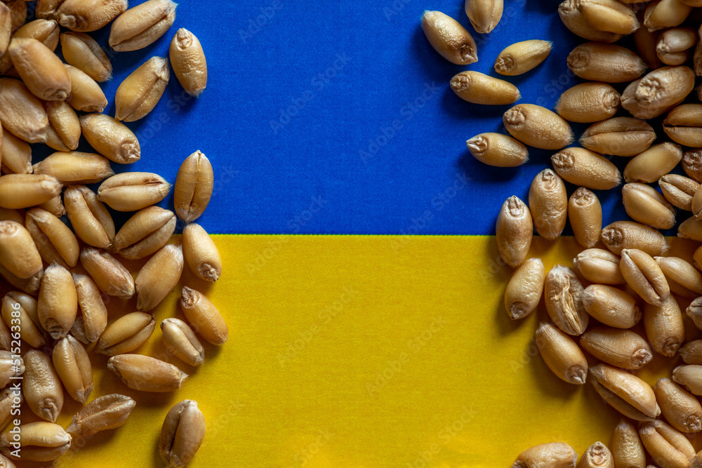 Wheat grain on Ukraie flag. Concept of grain export problems