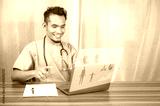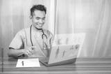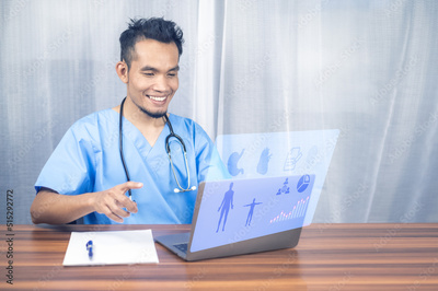 Asian Doctors use computer graphics to research patients' treatment in hospital