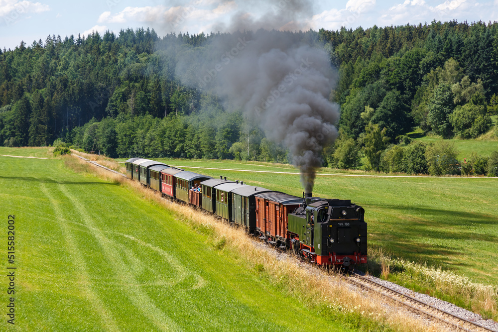 Öchsle steam train locomotive railway near Ochsenhausen Wennedach in Germany