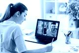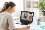 school, education and distance learning concept - female student with teacher on laptop computer screen having video call or online class at home