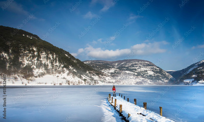 Beautiful view of windmills around the Cubuk (Çubuk) Lake located in the district of Bolu - Goynuk (Göynük) in Turkey. Windmills were built for a movie shot in previous years.