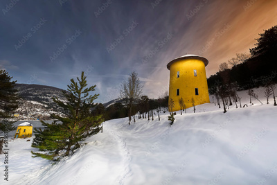 Beautiful view of windmills around the Cubuk (Çubuk) Lake located in the district of Bolu - Goynuk (Göynük) in Turkey. Windmills were built for a movie shot in previous years.