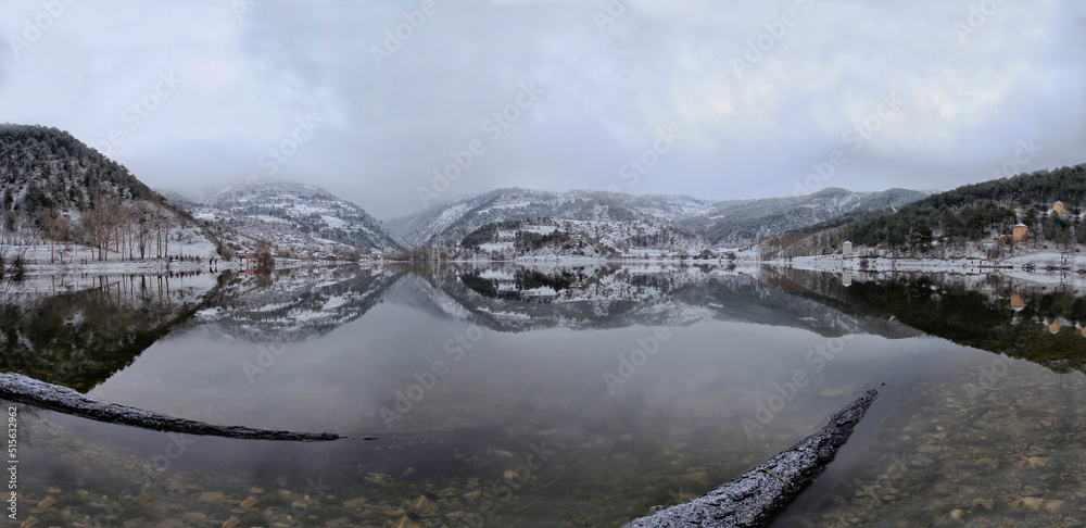 Beautiful view of windmills around the Cubuk (Çubuk) Lake located in the district of Bolu - Goynuk (Göynük) in Turkey. Windmills were built for a movie shot in previous years.