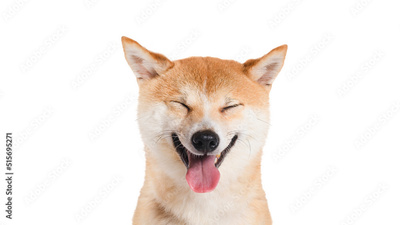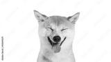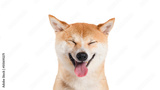Shiba inu dog Red-haired Japanese dog on studio white