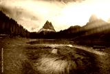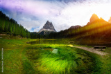 Majestic landscape of Antorno lake with famous Dolomites mountain peak of Tre Cime di Lavaredo in background in Eastern Dolomites, Italy Europe. Beautiful nature scenery and scenic travel destination.
