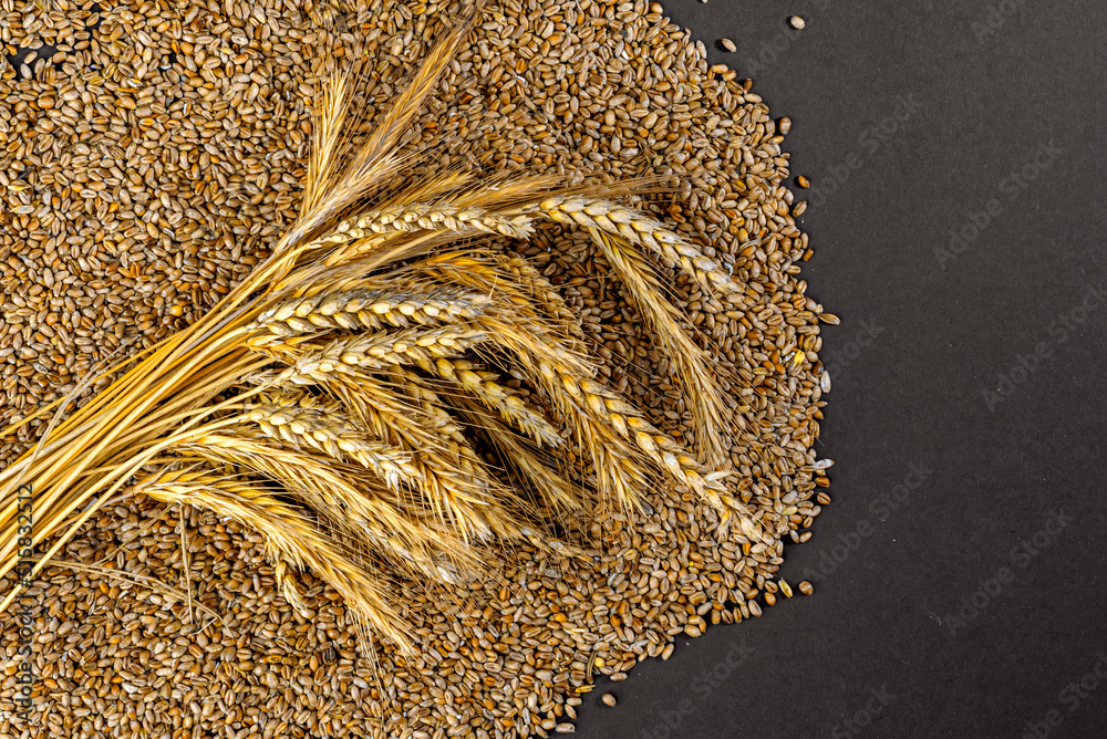 Bunch of ears of wheat, rye, barley. Harvest Grains concept
