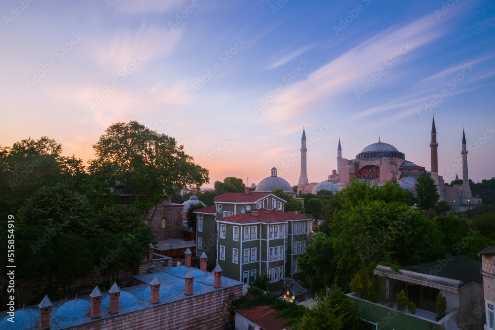 Hagia Sophia domes and minarets in the old town of Istanbul, Turkey