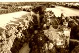 Aerial view of medieval castle in Bergamo, Castle of Marne, Lombardy, Italy