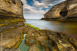 Sea Stones, Rocky Sea, fantastic cliffs beautiful background in Kefken, Kerpe, Sakarya, Turkey. Landscape and seascape with Rocks and Sea with amazing sky. Ruins of Kerpe Castle.