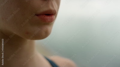 Unknown girl inhaling exhaling practicing yoga meditation on nature close up.
