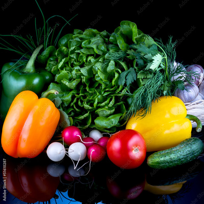 Fresh vegetables isolated on black background