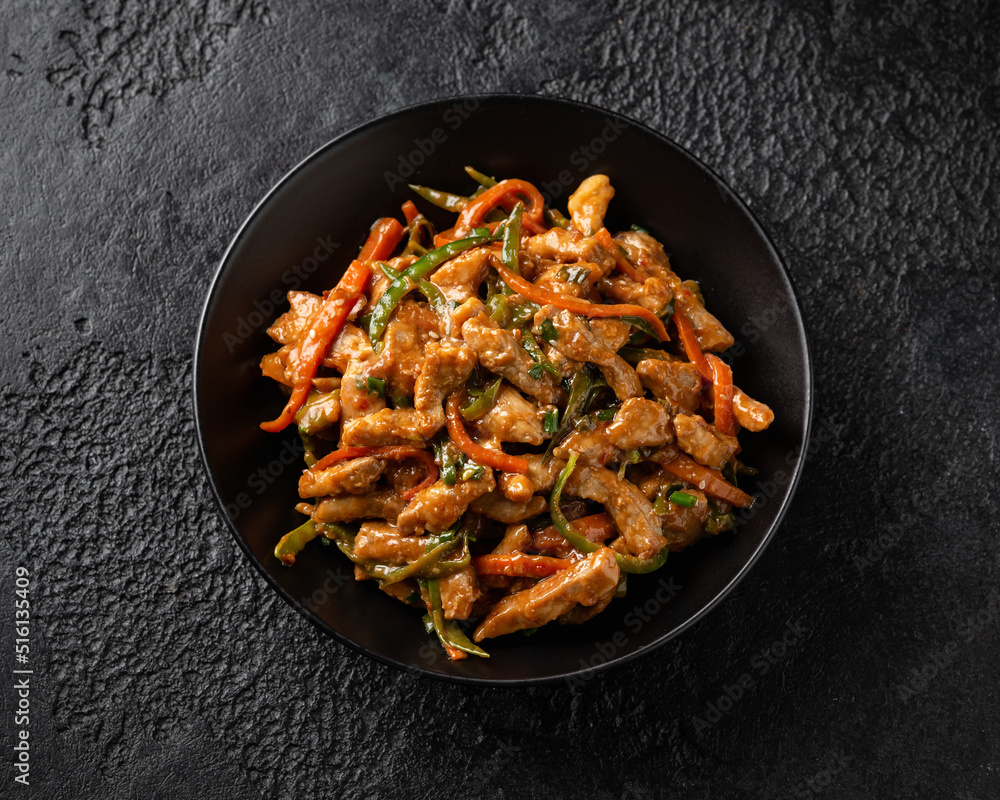 Chinese sichuan shredded pork with vegetables. Asian cuisine