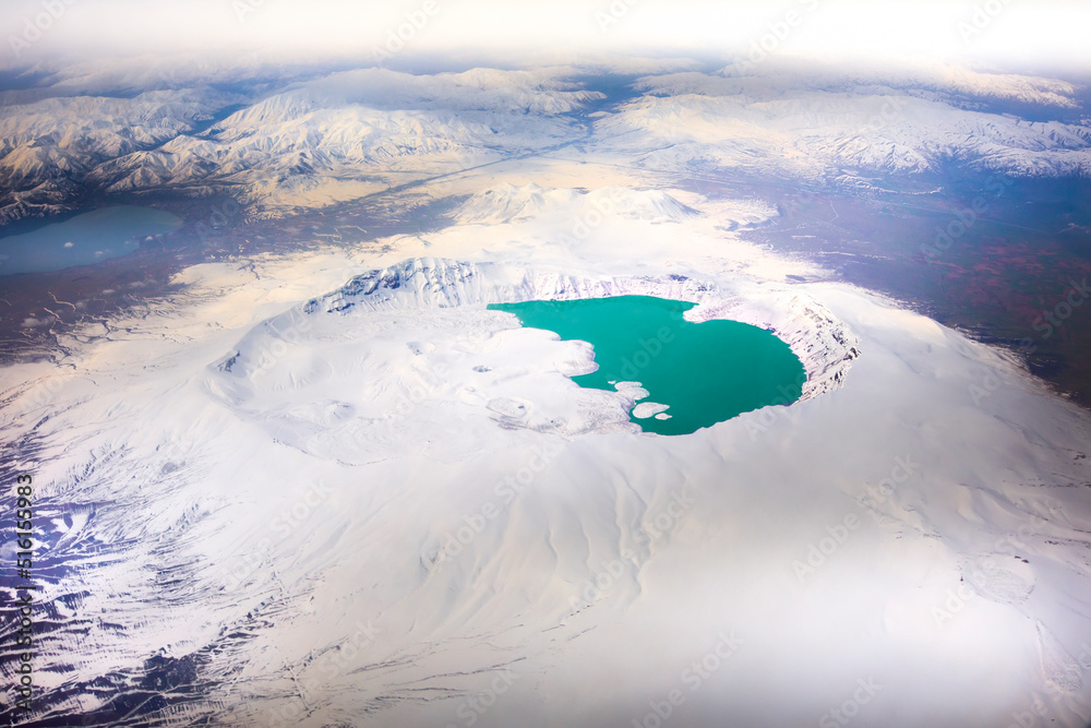 Amazing aerial view of Nemrut Crater Lake which is second largest crater lake in the world