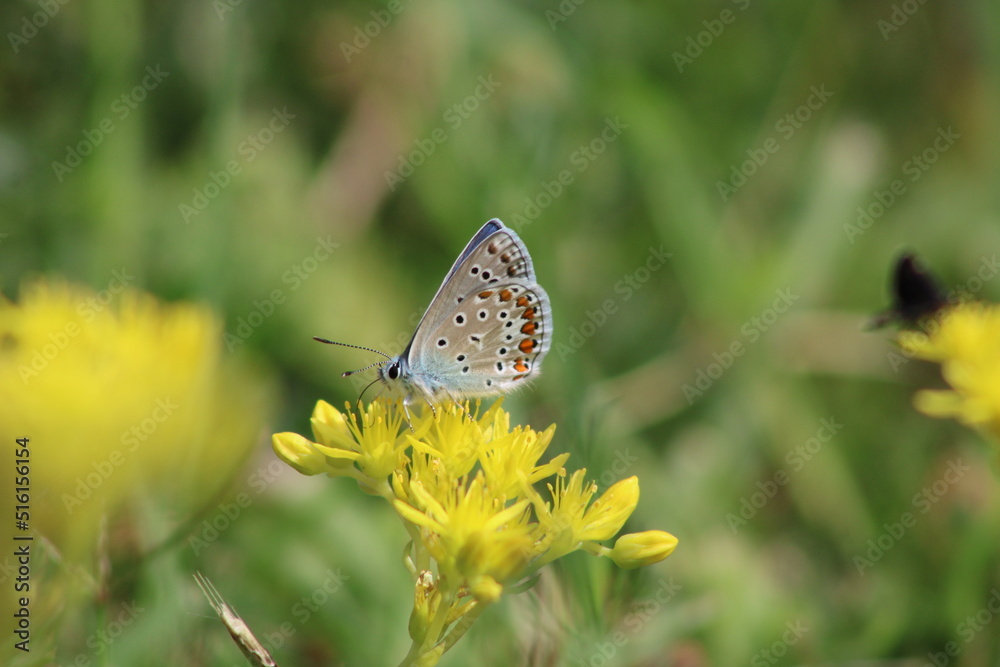 Papillon sur fleur jaune, Genre Polyommatus, protection de la nature et biodiversité