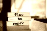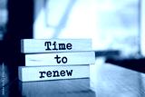 Wooden blocks with words 'TIME TO RENEW'.
