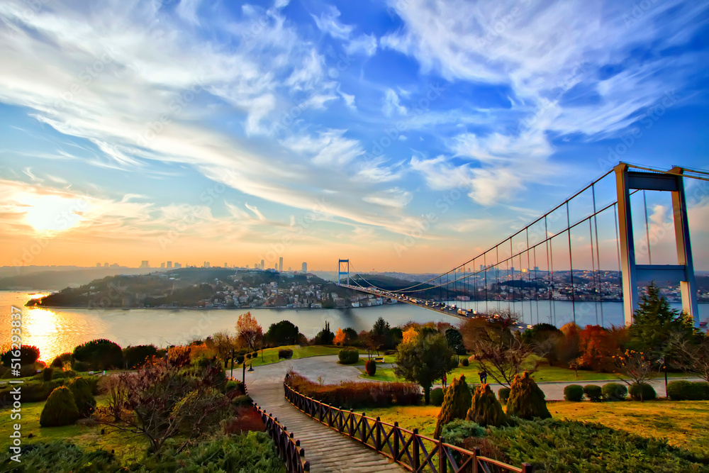 Fatih Sultan Mehmet Bridge view from Otagtepe Park in Istanbul
