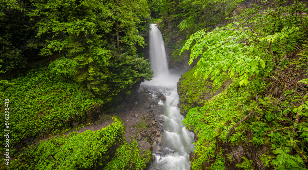 Palovit Waterfall in summer. Region gets huge amount of rain during the year, water level remains high even in the summer. Rize Turkey. Black Sea Region of Turkey, Karadeniz in Turkish.