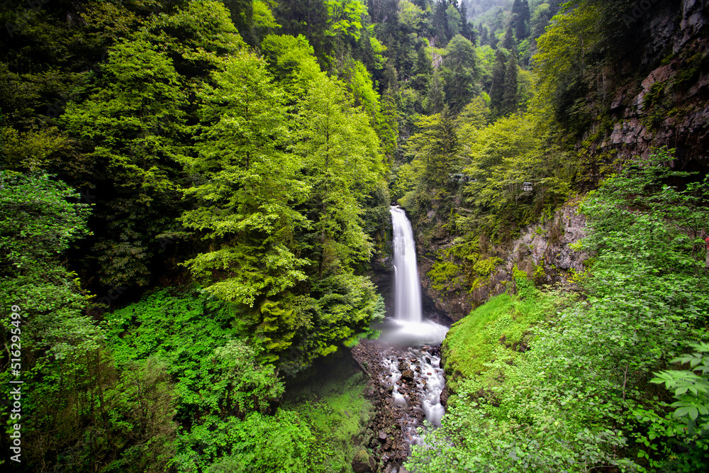 Palovit Waterfall in summer. Region gets huge amount of rain during the year, water level remains high even in the summer. Rize Turkey. Black Sea Region of Turkey, Karadeniz in Turkish.