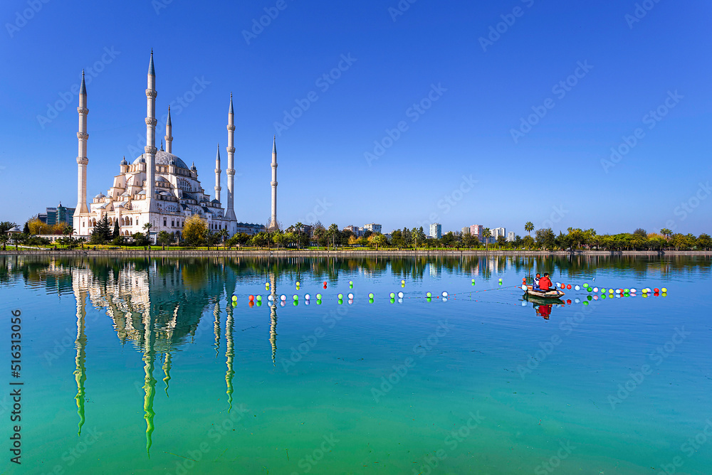 Sabancı Merkez Camii (English: Sabancı Central Mosque) in Adana, Turkey. The mosque is the second largest mosque in Turkey and the landmark in the city of Adana
