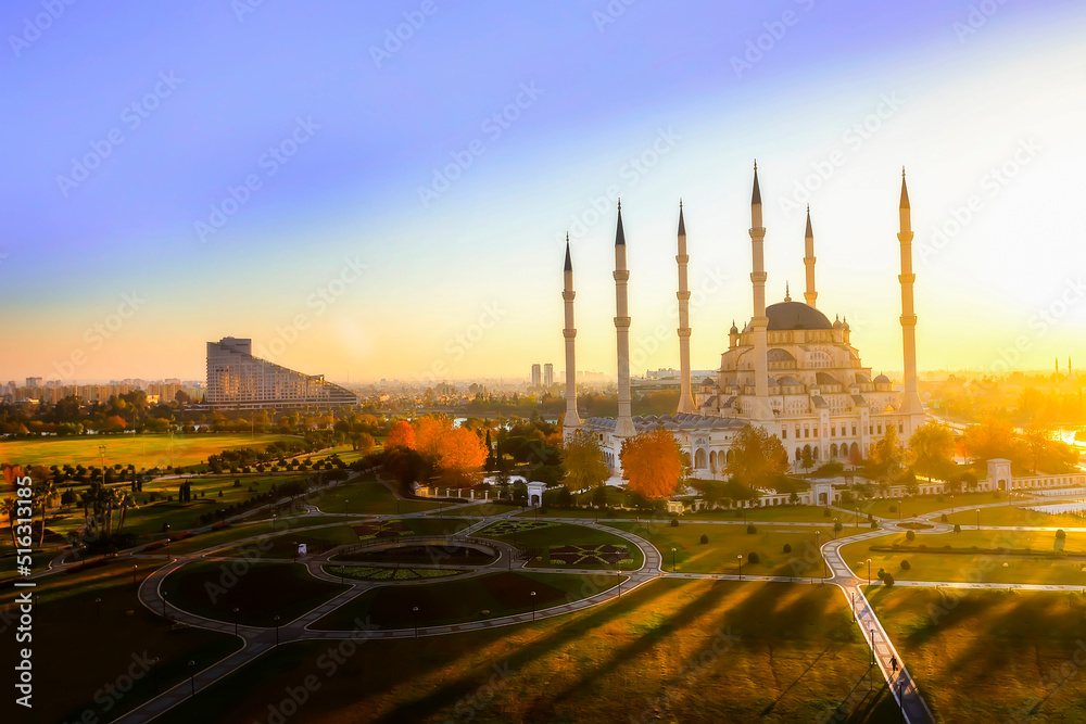 Sabancı Merkez Camii (English: Sabancı Central Mosque) in Adana, Turkey. The mosque is the second largest mosque in Turkey and the landmark in the city of Adana