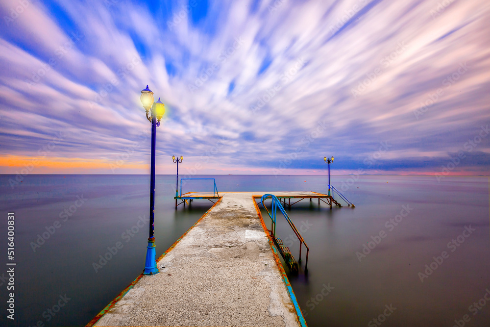 Sile Istanbul's sea town photographed with long exposure technique, rough waves and piers