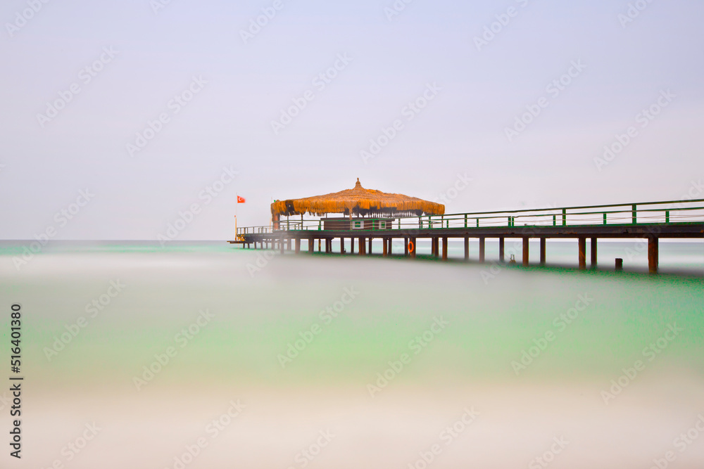 Sile Istanbul's sea town photographed with long exposure technique, rough waves and piers