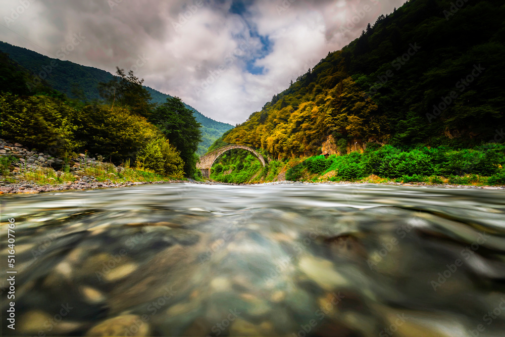 Old stone bridges and people passing by