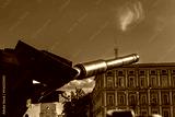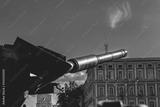 Gun barrel of a wrecked tank aimed at the square in Kyiv