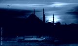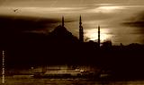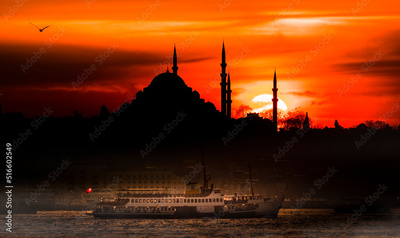 Sunset in Istanbul, Turkey with Suleymaniye Mosque (Ottoman imperial mosque). View from Galata Bridge in Istanbul.