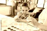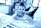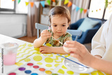 holidays, family and people concept - mother and little baby daughter coloring easter eggs with watercolors at home