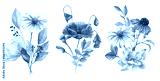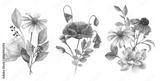 Delicate sets of wild flowers of chamomile, poppies, viola with field greens. Floral, watercolor illustration isolated on white background.