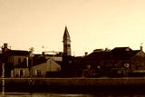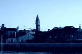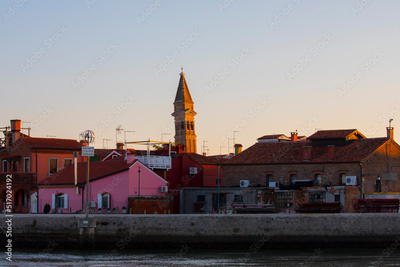 Colorful houses of Burano island. Multicolored buildings on fondamenta embankment of narrow water canal with fishing boats and stone bridge, Venice Province, Veneto Region, Italy. Burano postcard