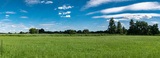krajobraz szerokiej łąki, panorama zielonych terenów w zachodniej Polsce