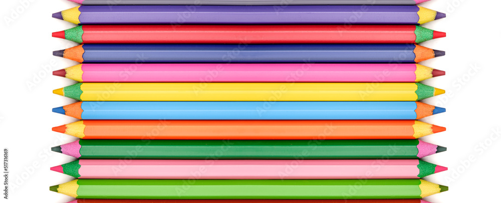 colored wooden pencils on white background