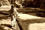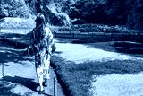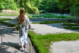 神奈川県鎌倉市 明月院の花菖蒲と浴衣女性