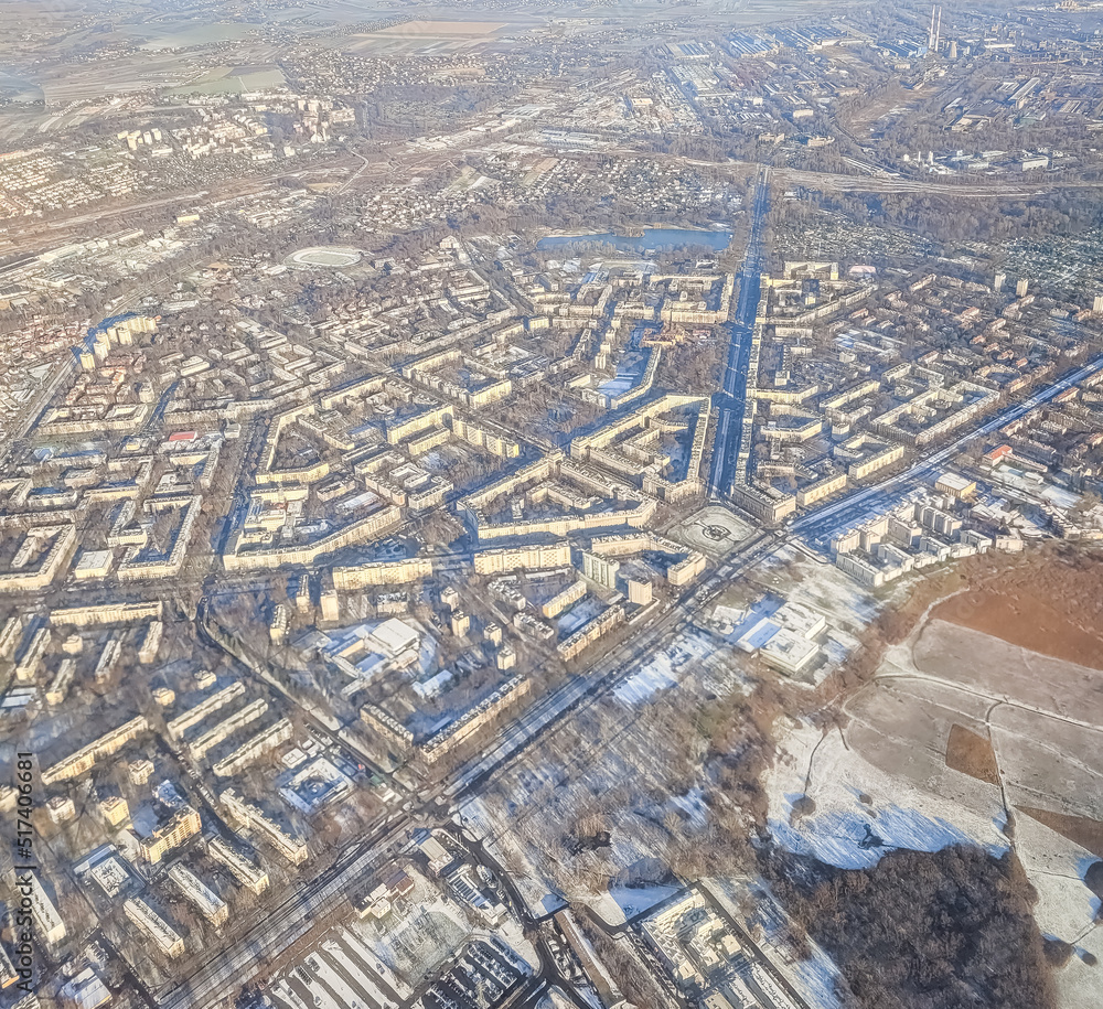 Aerial view of Nowa Huta communist district in Krakow, Poland