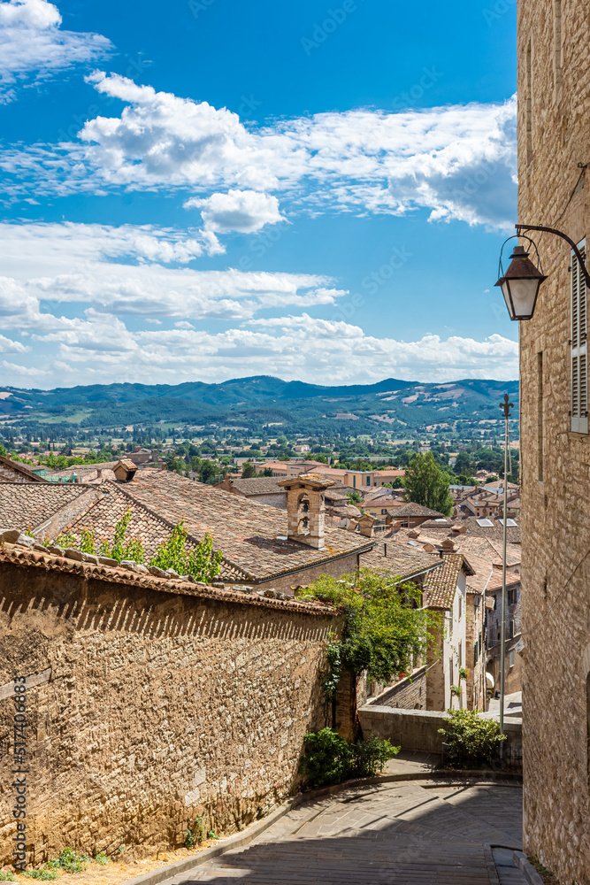 Medieval street in the historic center of Gubbio, town in Umbria central Italy