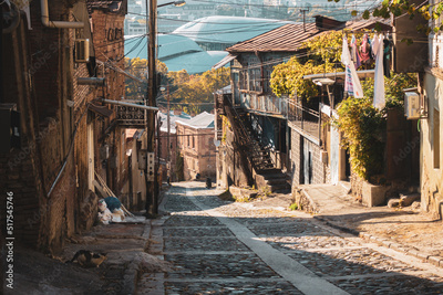Historical streets of Tbilisi. Cobblestone road.