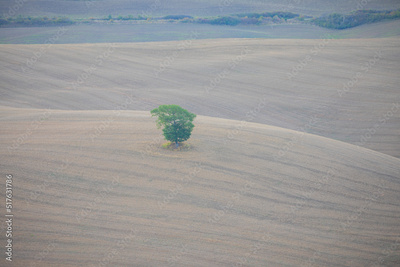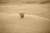 Tuscany landscape at sunrise with a little chapel of Madonna di Vitaleta, San Quirico d'Orcia, Italy