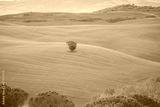Tuscany landscape at sunrise with a little chapel of Madonna di Vitaleta, San Quirico d'Orcia, Italy