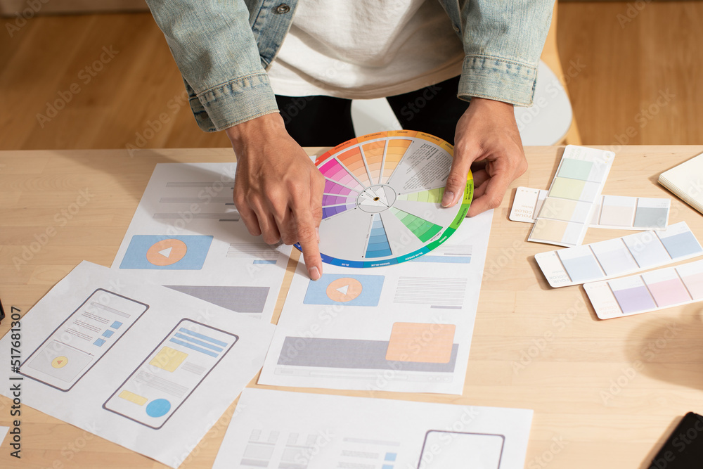Close up hands of Asian young business man in home office. Working on paperwork and adjust the worksheet. Working from home is new normal working concept. Technology and data analytic could helped.