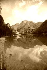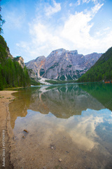 Pragser Wildsee or Lago di Braies. Italian Alps, Dolomites, UNESCO world heritage site, Fanes-Senes-Braies nature park, South Tyrol, Trentino-Alto Adige, Italy